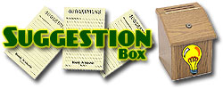 Click here to send us suggestions about how we can make our site better. Have an idea for a cool feature you want to see implemented? Tell us.