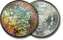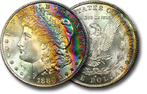 rainbow Morgan dollars.