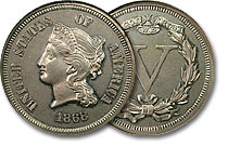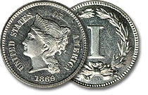 Aww, how cute. The three cent nickel design that was used on circulating coins from 1865 until 1889 is the basis for the design on this pattern nickel. If you held it side-by-side with a 3cn, this coin would look like it's big brother. Scarce and desirabl... |