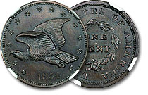| 1854 1c NGC PF66BN Blue Chocolate Flying Eagle Cent J-164 |