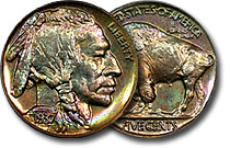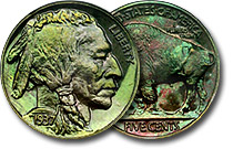 | 1937 5c NGC PF66 Dramatic Lime Green Toned Proof Buffalo |