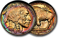 | 1938-D 5c NGC MS65 Superb Rainbow Toned Buffalo Nickel |