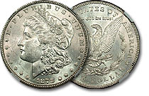This Morgan dollar exhibits attractive uncirculated surfaces. There is a tiny ding on the left obverse rim. ...