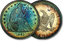 | 1841 $1 NGC AU58 Monster Rainbow Toned Seated Dollar |