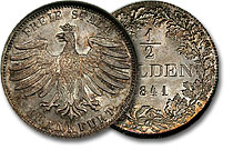| 1841 1/2GUL NGC MS67 Frankfurt Germany Half Gulden |