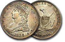 | 1838 50c PCGS AU58 Fabulous Toned Reeded Edge Bust Half |