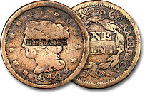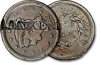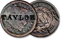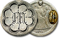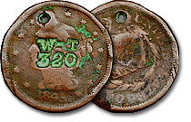 This Coronet Head Cent is quite heavily weathered and has irregular edges from heavy use (most likely not in commerce), and is counterstamped with “W-T; 320” on the obverse. ... |