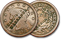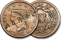 | 1845 1c US Coronet Large Cent Counterstamped – W-T 320 |