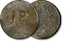 This weathered Draped Bust Large Cent is counterstamped on the obverse “JP”. This appears to be a VERY early counterstamp. ... |