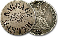 ‘BAGGAGE MASTER’ surrounding the initials ‘WKH’ are boldly engraved on the moneyside of this very cool looking love token. The back shows evidence of pinback hardware.