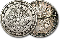 This magnificent Morgan Dollar Love Token is beautifully engraved with the initials MMC on the moneyside. The reverse has a still-working pinback hardware still attached as well. This is a superb Love Token. ... |