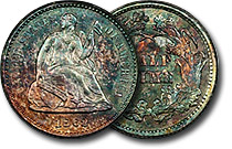 | 1862 H10c PCGS MS65 Stunning Toned Gem Seated Half Dime |