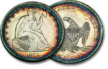 | 1862 $1 NGC PF64* Amazingly Toned Proof Seated Dollar |