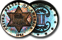 | 1862 3cs NGC PF66 Beautiful Toned Proof Trime |