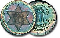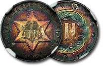 | 1861 3cs NGC MS63 Rainbow Target Toned Trime |