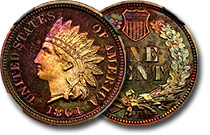 | 1863 1c NGC MS64 Toned Indian Cent |
