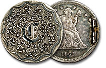 | 1861 25c US Seated Quarter Love Token Pin – R |