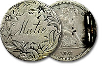 | 1863 25c US Seated Quarter Love Token – Mother |
