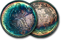 Beautiful, original, and worthy of the cameo designation, this lovely Gem Proof Seated half dollar is worthy of consideration if you collect the series or simply appreciate a beautiful coin. Shades of lime green float around the rims blending into a fabul... |