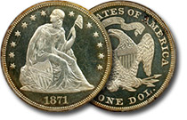 | 1871 $1 PCGS PR63CAM Proof Cameo Seated Dollar |