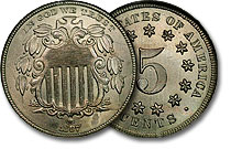 | 1867 5c NGC MS65 No Rays Shield Nickel |