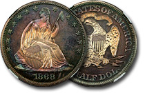 | 1868 50c NGC PF65 Beautiful Near Cameo Toned Proof Seated Half |