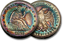 | 1875 20c NGC AU58 Monster Rainbow Twenty Cents - PQ++ |