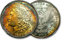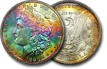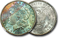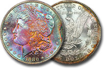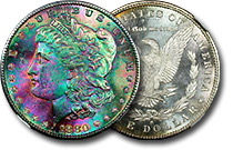 | 1880-S $1 NGC MS66 Glowing Vivid Rainbow Toned Morgan |