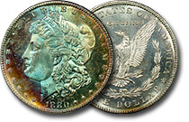 | 1880-S $1 PCGS MS65 Bowl Luster Rainbow Morgan Dollar |