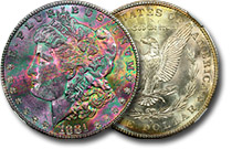| 1881-S $1 NGC MS64 Electric Iceburg Rainbow Toned Morgan |