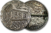 | 1881 $1 US Morgan Dollar Love Token Engraved – Bessie w/ Bird |
