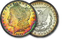 | 1881-S PCGS MS65 Deep Rainbow Toned Morgan Dollar |