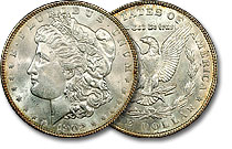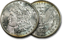 This beautiful Morgan Dollar exhibits superb luster and surface preservation consistent with a near-gem example. Some light gold toning is noted on the lower obverse and upper reverse. ... |