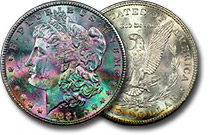 rainbow Morgan dollars.