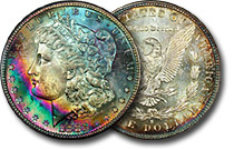 rainbow Morgan dollars.