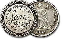 | 1882 U.S. Seated Dime Love Token Engraved - Sam |