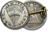 | 1876 25c US Seated Quarter Love Token Pin Fan Pictorial – MKL |