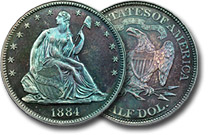 | 1884 50c PCGS PR65 Monster Blue Toned Proof Seated Half |