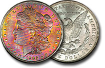 | 1885-CC $1 PCGS MS65 Sunset Toned Morgan Silver Dollar |