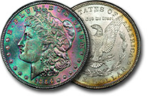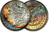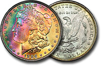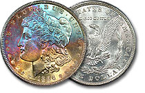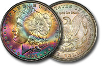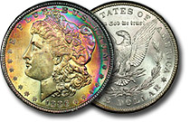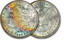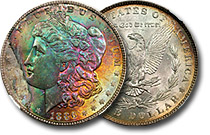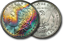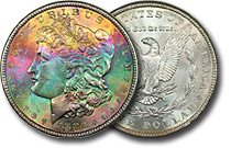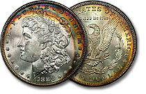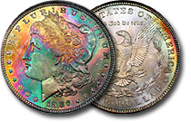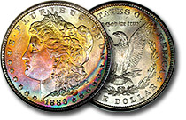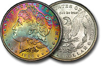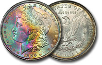 | 1886 $1 PCGS MS65 Electric Wave Rainbow Toned Morgan |