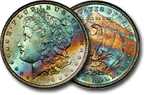 | 1886 $1 NGC MS67 Rainbow Toned Morgan - Arctic Endroll |
