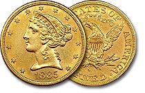 | 1885-S $5 AU US Liberty Gold Half Eagle |