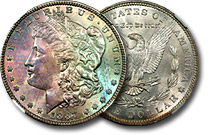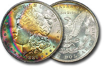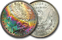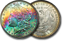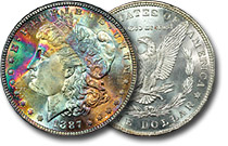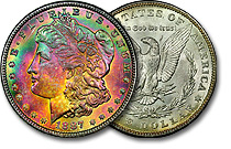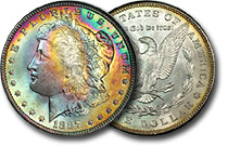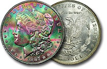 | 1887 $1 PCGS MS64+ Vivid Rainbow Toned Morgan Dollar |