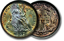 | 1887 10c NGC MS66 CAC Stunning Toned Seated Liberty Dime |