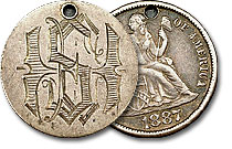 | 1887 10c US Seated Dime Love Token Engraved – SFH |