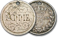 1890 British 3-Pence (Jubilee) Love Token Engraved - "Annie"
