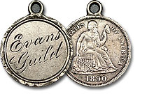 This amazing Morgan Silver Dollar Love Token is beautifully engraved with "Born Nov 16; Henry Baron Welty; From Auntie" and is affixed with a large loop for wearing on a necklace. ... |