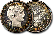 | 1892 25c NGC PF64 CAMEO Toned Proof Barber Quarter - CAC |