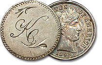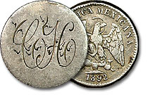 1892 Mexico 5 Centavos Love Token Engraved - CH. I could honestly see a Chavez Hernandez owning this. Yes, I believe I could. Anyway, this is a lovey token that is engraved in a very delicate design and sure to please those of an asthetic eye. ... |