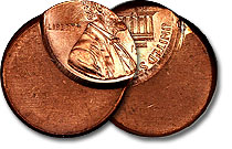 This premium gem Lincoln cent was struck about 50% off center just out of the range of showing the full date. NGC graded this error coin MS66RD (Red) with certification number 011164-053. ... |